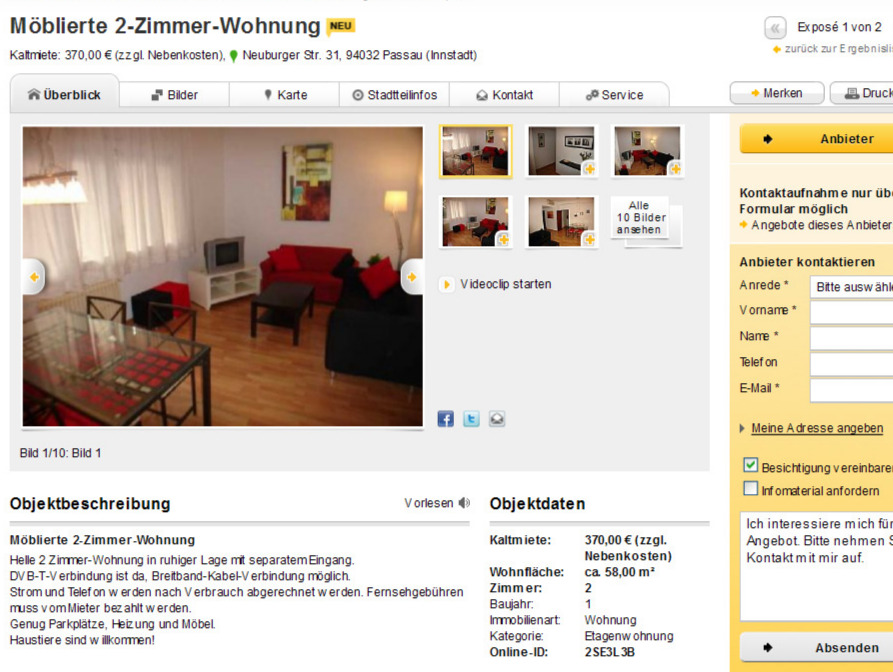 wohnungsbetrug.blogspot.com: "Möblierte 2-Zimmer-Wohnung" Neuburger Str. 31, 94032 Passau (Innstadt)